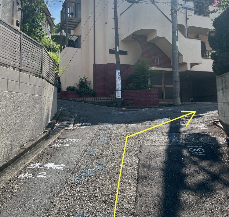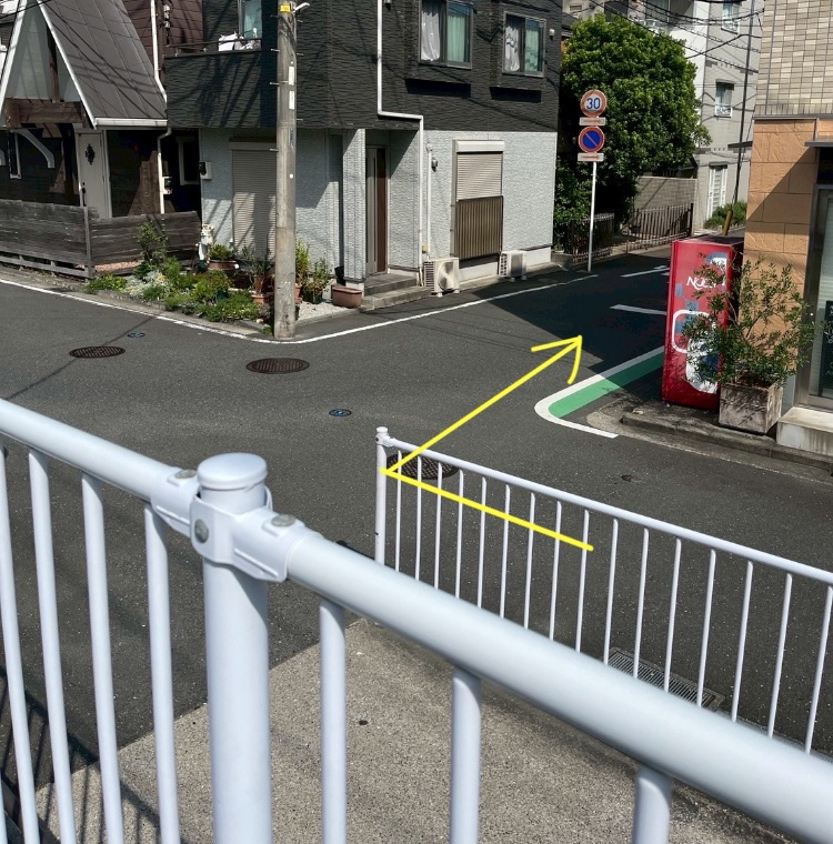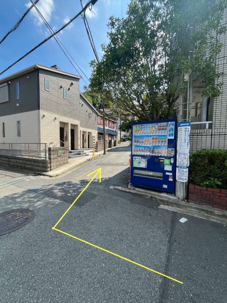 その坂の先にある《赤い自販機》を右に曲がる